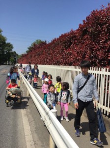 傘をさしている時はいつもよりも太っちょになるので、必ず一列で歩きます。今日の並ぶときのルールはサンドイッチ。男の子がパン、女の子はたまごやハム、レタスにトマトなどサンドイッチの具の役です。ぎゅうぎゅうにつぶれたサンドイッチや間がスカスカのサンドイッチにならないように、自分たちで声を掛け合います。駅に到着し、切符を買います。子ども料金にしたり路線乗換の切符を買うので、手順は色々ですが説明は一度だけ。あとは一人ずつ順番に切符を買っていきます。今日は傘もあるし、地面も濡れているので、リュックサックを一回下ろして、、、などやっていられません。「手前のポケットから、お財布だしてくれる?」「ちょっとしまってくれる?」など声を掛け合いながら、最後の一人が買い終わるまで、全員で確認します。電車を待つときは、「降りる人が先だから、3人3人に分かれて並んでおこう」、電車の中では「次はこっちのドアが開くかな?」「あと何駅だろう?」とアナウンスに耳を傾けます。