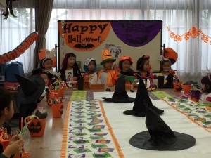 最後に少しお外へ出かけし、せっかくの仮装を町のみなさんにもご披露しました。今日一日でいろいろなお菓子をもらってうれしそうな子ども達。仮装の準備も、お父様お母様と相談しながら楽しく進められたことでしょう。ハロウィンを楽しむ習慣はいつの間にか日本にもすっかり浸透しました。テレビなどの影響もあり、本来の意味が薄れてしまいかねないことが気がかりです。せっかく子ども達に楽しんでもらうのなら、大人が気を付けなければいけないことがあるのかもしれません。