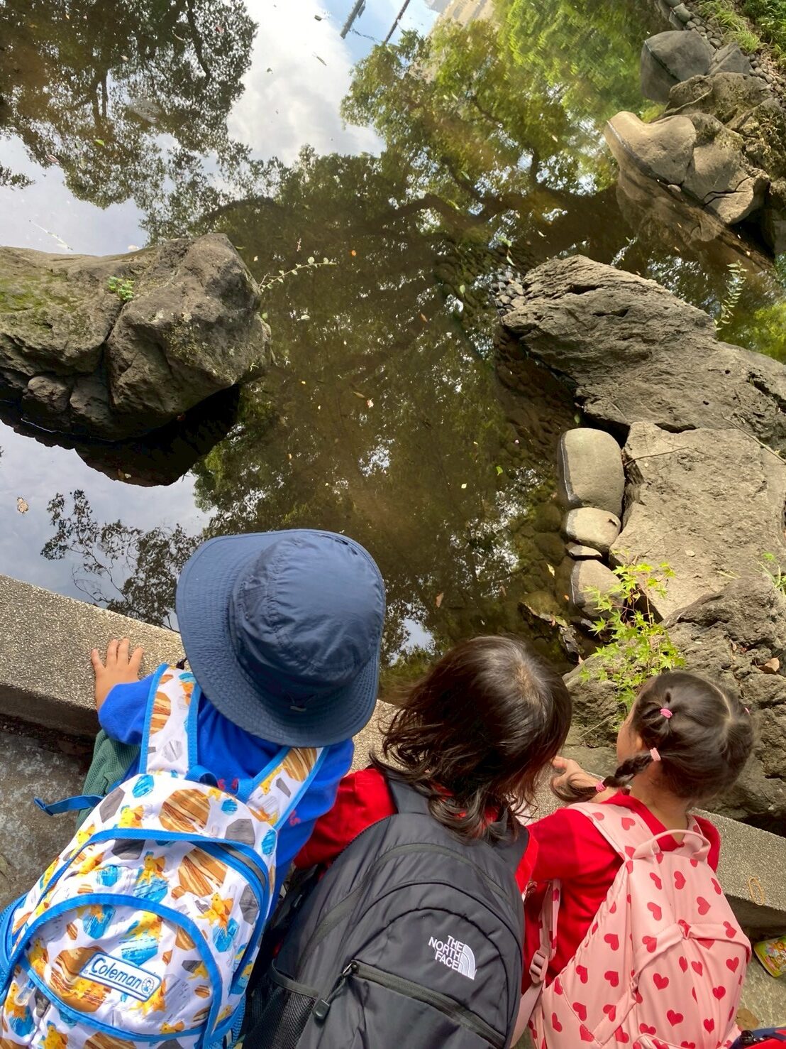 公園内を探検した後、東京タワーの隣の公園で最後のひと遊びをすることにしました。モミジの葉探しやいろ鬼、川で生き物探しなどまるでどこかの森に遊びに来たかのような時間となりました。身近なところでも足を運ぶたびに新しい発見があることを再確認した一日となりました。