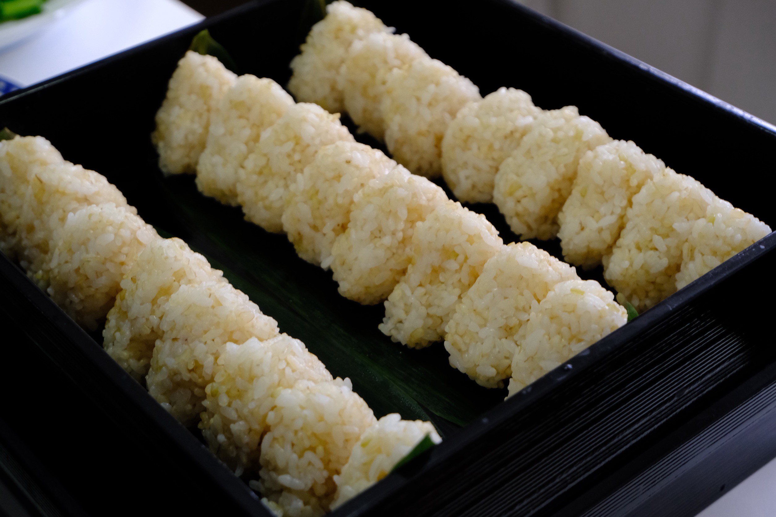 まずはおにぎり。今年子どもたちが田植えをし、稲刈りをした新米を使います。