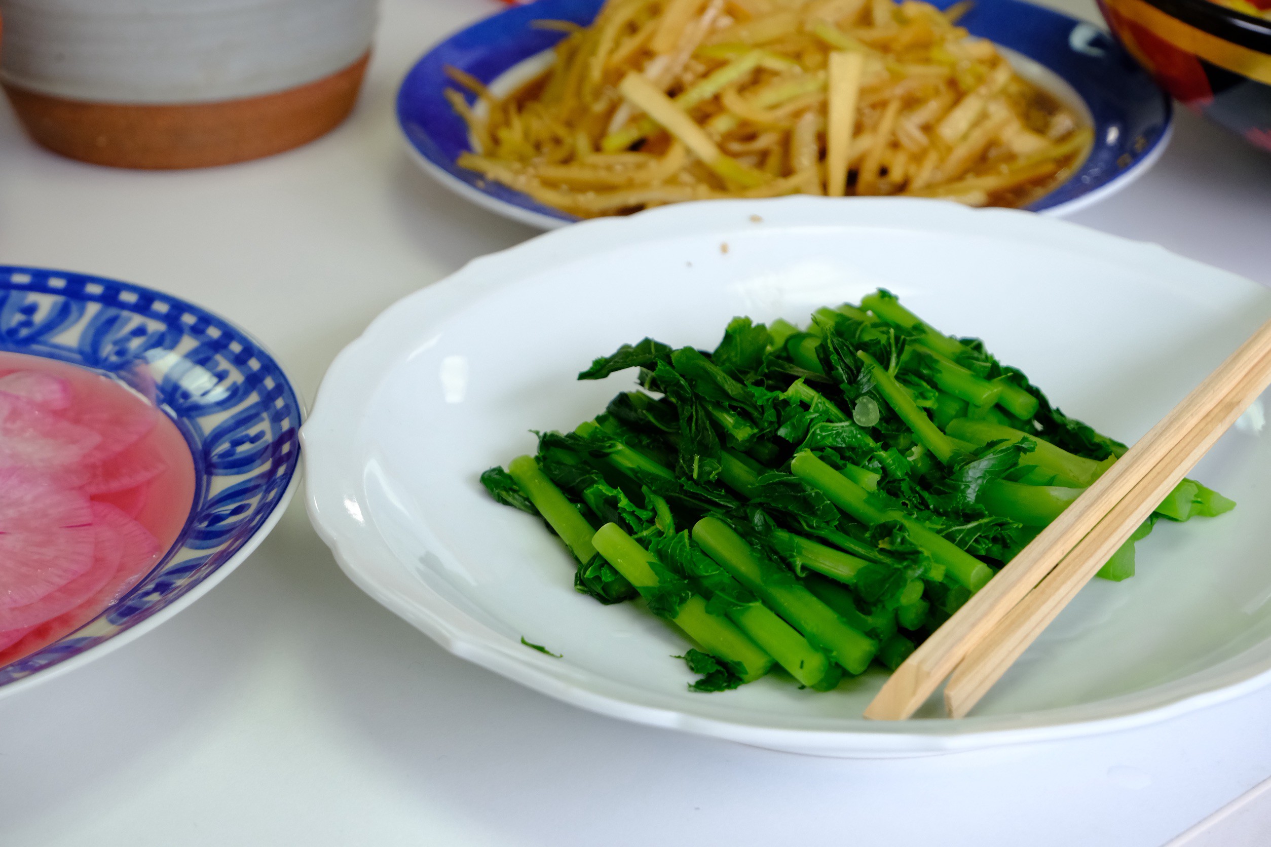 大根の葉の部分は水に浸けてシャキッとさせてから、茹でたり炒めたりでこれも全て使い切ります。
