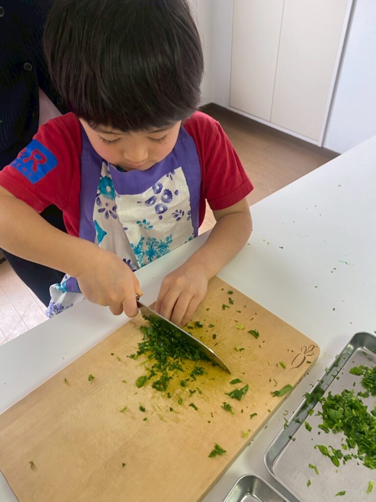 すずなやすずしろのみじん切りも、大人の心配をよそに、手際よく安全にできていて感心しました。
