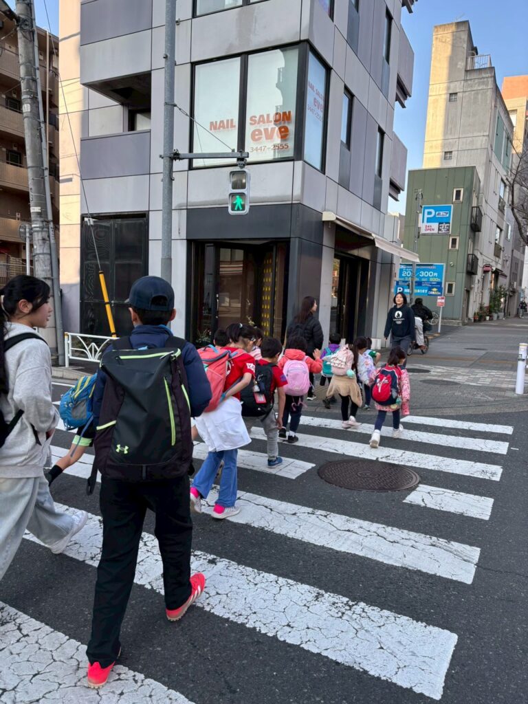白い線を平均台にして1列で進んだり、横断歩道は白色だけを踏んだり、おでんの具を10個、色を10個覚えてみたり、みんなで楽しく遊びながら歩いていきました。