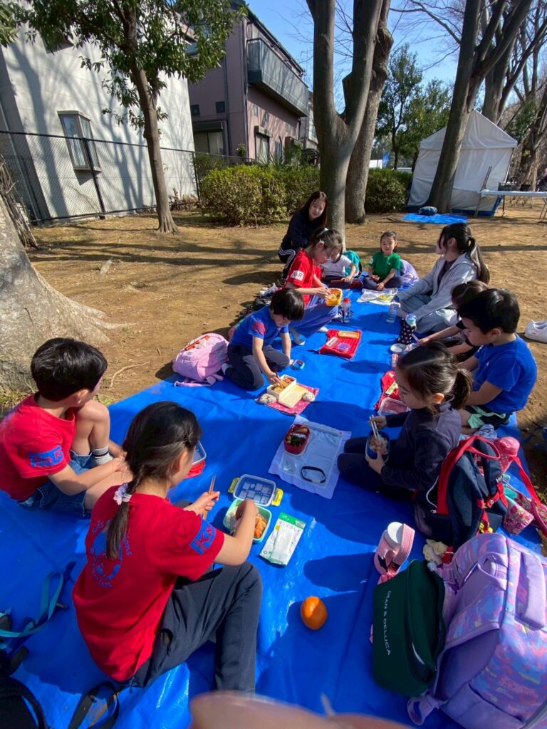 探検中に、1人がお腹が空いた!という声が聞こえ、するとまた別のところから、今何時?お弁当はいつ食べるの?と。また別のところからも、早くお昼ご飯が食べたい!と、みんなとってもお腹が空いた様子だったので、少し早めのお昼ご飯にすることにしました。周りには鳩が多く、みんなのお弁当を狙っていたので、取られてしまう前に食べてしまいます。今日も美味しそうなお弁当をもりもり食べました。