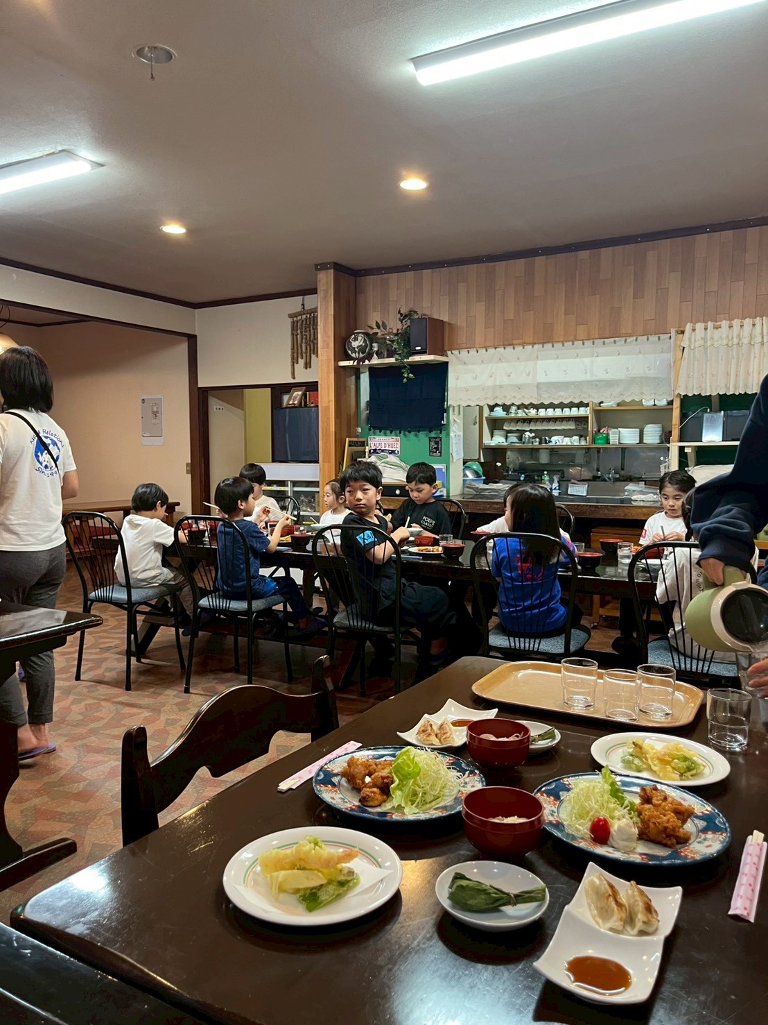 夜ご飯も、唐揚げや餃子、そうめんなど盛りだくさんでしたが、さらにおかわりをする子も多く、みんな一生懸命スキーをしたことがよく分かりました。