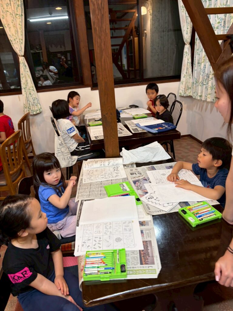 夜ご飯までの自由時間では、折り紙を教えてくれる子や、かくれんぼを楽しむ子など、それぞれの時間を楽しんでいました。
