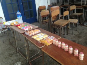 使わなくなって外に置いてあった机を借りて、今日はお外でバイキングです。