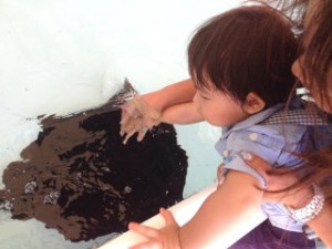 おいしいお弁当をみんなでいただいた後は、お絵描きタイムです。タコの絵にシールを貼ったり、塗り絵をしたり。つい先ほど観察した海の生き物たちのイメージを絵にあらわします。1歳の子もちゃんと上手にできましたよ!