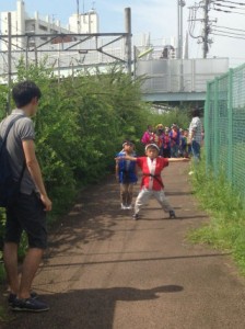 9月13日に奥沢神社の大蛇祭り遠足を行いました。この日はよく晴れて、まさに遠足日和でした。朝8時に田園調布駅に集合し、お見送りに来て下さったお父様やお母様にごあいさつをしていざ出発です。今回の遠足は電車やバスを使わずにすべて自分たちの足で移動したので、街を歩くことで様々な発見がありました。