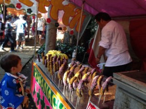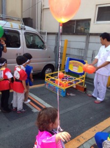 その後、お父様やお母様にいただいた500円のお小遣いを握りしめ、お祭りの縁日に行きました。射的や金魚すくい、チョコバナナなどたくさんのお店があり子ども達はそれぞれ好きなことをして楽しみます。お祭りの縁日の他にも、地域の方々がご好意でやってくださるかき氷屋さんやポップコーン屋さん、輪投げなども楽しませていただきました。どのゲームで遊ぼうか、考えて列に並びまず。たくさんやりたいものがあると、あっちに行ってみたりこっちに行ってみたりと動き回ってしまいがちですが、「これ!」と決めたものに熱中して取り組むことがとっても大切です。結果、景品をゲットすることが出来た子もいました。