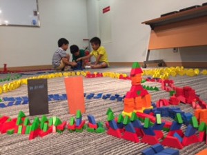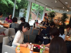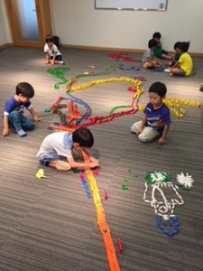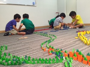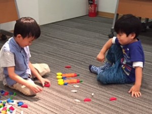 今回は小さなお子さんもご一緒に参加されることもあって、昨晩からの雨が心配でしたが、セミナーがはじまる少し前に雨はやんでくれました。幸先の良い、玉川テラス子育てセミナーのはじまりです。いつもならお母様方がセミナーを受けている間、子ども達は玉川高島屋の屋上庭園で楽しむところですが、今日はセミナーの隣のお部屋でパターンブロックをすることになりました。隣から子ども達の楽しそうな声が聞こえてくるなかで(時々「しーっ、静かに!」なんていう声も!)何か子育てのヒントになる言葉をキャッチして帰っていただきたいと思いました。