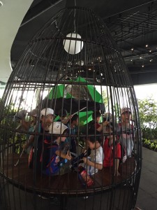 兵隊さんのようなビルの警備の方が子ども達のことを見てくれていて、安全で遊べていることを感じました。階段をのぼったり、鳥かごに入って鳥の気分を味わって、知っている鳥の名前を言ったりと新しい遊びを発見しました。