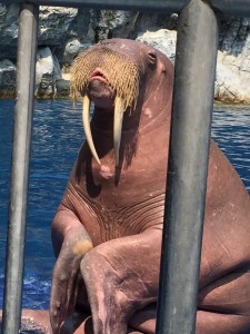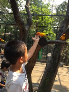 キリン・テラスを後にしました。園内には動物の絵の看板で案内があり、とても分かりやすく移動出来るようになっています。セイウチを観察していると拍手の仕草を見せてくれました。訓練されているのですね。「卵館」というのがあり、そこではダチョウなどの卵が孵化する様子を観察できます。孵化した赤ちゃん鳥が成長する過程も観察できるようになっていて、赤ちゃん鳥に餌付けすることもできました。すごい食欲に子ども達はびっくりしていました。ここではいろいろな卵や動物の骨も見ることができました。