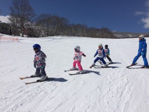 午後の練習が始まりました。午前中よりももっとうまくなるぞ!と意気込んで楽しそうに滑っていました。沢山転んでは滑ってを繰り返し、みんなどんどん上手になっていき、とても嬉しそうでした。一人でリフトに乗れるようになった子が増えて、みんな一人前の顔をしていました。どれだけ滑ったことでしょう。スキーは、自然の中でのスポーツ。だからこそコンディションは選べません。冬の寒さの中でのスキーは醍醐味もありますが、その寒さは厳しいもの。スキーが好きになってほしいという願いがあるからこそ、こひつじかいのスキーは春スキーです。暖かいと雪がシャーベット状になって、重い雪で子ども達は手こずることもあります。ところが、今年は皆の願いが通じたのでしょうか。キャンプの前日までは暖冬だった今年の冬、もしかしたら雪がなくなってしまうかも!というほど雪がとけ、地面が顔を出していました。ところが、24日の夜に大雪になり50センチの積雪、茶色くなっていたゲレンデも、見事に雪化粧をして銀世界になりました。だからこそ、スキーの腕も上がるくらいに練習ができました。