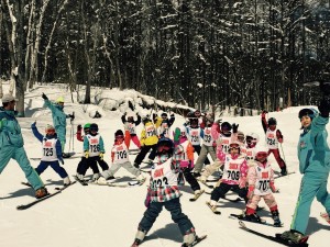 今日は普通部や中等部でスキーの練習に来ているお兄様、お姉様も一役買ってくれます。自分達のレッスンの合間に、初めてリフトに乗る子ども達のサポートです。まだよちよちスキーの子ども達を、しっかりと危なくないように導き、リフトに一緒に乗ってくれます。リフトの上ではどんな会話が弾んだのでしょうか?きっと、自分達なりに考えて、楽しいお話や、もしかしたらスキーの滑り方なども話してくれていたのかもしれません。沢山の仲間に支えられて、このキャンプは楽しくも危険がなく滑り、過ごすことが出来ます。きっとこのよちよちスキーの子ども達も、あと何年かしたらこのようなお兄様達のように成長していると願っています。