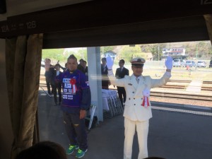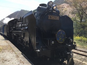 いよいよ待ちに待ったSLに乗りに行きます。駅に着くと、さっき見たひょっこりひょうたん島の碑がありました。駅の目の前には、鉄鋼の街の象徴の新日鉄釜石の工場から煙がもくもくと出ていました。また、2019年にはラグビーワールドカップがここで行われ、ラグビーの街でもあります。蒸気機関車の音が聞こえてきて、急いでホームに向いました。今年最初の運行なので、セレモニーが行われました。そこで、銀河鉄道がモチーフになった車両をお絵描きします。みんなが上手に描いているので、駅員さんからお褒めの言葉をいただきました。SLの中に乗り、こすもす公園を見ます。遠くで見た壁画は、近くで見た壁画とはまた別の迫力がありました。こすもす公園ではちょうど2周年の記念式典がはじまり、皆でSLに手をふっていました。