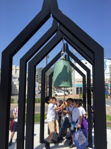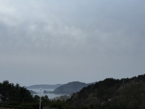 ご飯を食べたら、みんなでお散歩に行きます。海の見える坂を下りていきます。綺麗な海に感動すると同時に、津波のお話しも聞きました。歩いているところにも津波がきた話を聞き、みんなで海は遠くに見えるのに津波はこんなところまで来るのだな、ということを実感しました。見えなくなるところまで手を振って、皆が見送ってくださいました。