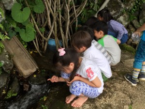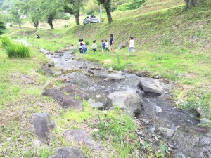 体も休まり、お腹がいっぱいになった子ども達は山や川で沢山体を動かして遊びます。竹林の中へ冒険をしに行ったり、虫を探したり、カニやカエルを捕まえたり、多くの自然に触れながら遊ぶことができました。