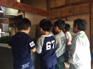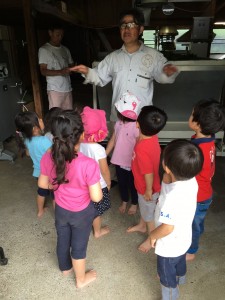 お茶の工場を見せていただき、様々な説明を受けました。間近で見せていただいたお茶を製造する機械にびっくりした子ども達は、しばらく「ずんちゃ、ずんちゃ」と機械のリズムを口ずさんでいました。