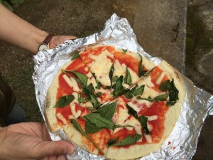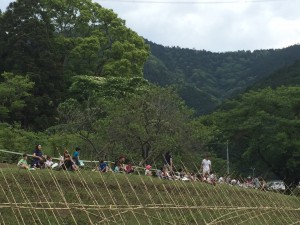 どのチームも新茶でかごがいっぱいになった時、子ども達はもうお腹がペコペコでした。茶畑の見える山の上でお弁当タイムです。たくさん体を動かした子ども達はあっという間にお弁当を食べ終えてしまいました。また畑の方が作ってくださったお茶の天ぷらは、お皿にたくさんのっていたにもかかわらず、子ども達が丸くなって座っているレジャーシートの真ん中へ置いた途端になくなってしまうほどの人気でした。