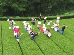 5月14日(土)神奈川県丹沢わさび茶屋へお茶摘みに行きました。午前8時に田園調布駅に帽子をかぶった子ども達が集まってきました。気持ちの良い、これ以上ないほどの晴天で、子ども達はるんるんです!