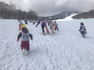 空がかすかに明るくなってくる朝の5:30。静かなロッジラーも徐々に賑やかになっていきます。6:00にはすでに皆、寝間着のままお友達とどんちゃん騒ぎ。しかし、起きた瞬間からお友達と遊べる楽しいスキー合宿も今日で最終日です。子ども達はいつもより少し早めに準備を済ませて朝ごはん。綺麗に食べ終わる子も増えました。急いで日焼け止めを塗り、歯磨きをして、ゲレンデへ向かいます。スキー板は1日目に比べると軽々運べるようになってきました。最後のスキー、皆カプセルリフトに乗って沢山滑ることができました。