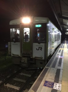 ここからは夜の釜石線の旅へと様変わりします。改札から歩いて3分ほどにある駅から出発なのですが、そこは東京では見ることのできない郷愁を感じられる様相で、ホームの周りには街灯もなく暗闇と静寂に包まれていました。子ども達も東京では感じることのない雰囲気を肌で感じているのか、静かに電車を待っていました。しばらくすると、汽笛の音が遠くに聞こえ、次に目を向けると電車のライトが微かに見え、子ども達は前のめりになってお出迎えをします。電車の強い明かりに照らされ、そこで初めて駅周辺の一部の様子を垣間見ることが出来ました。