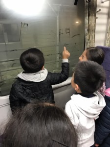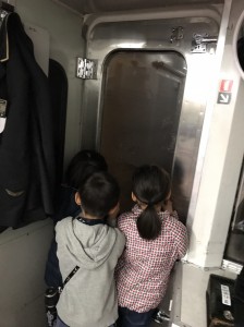 暖かみのある車両はゆっくりと我々の目の前に停まり、子ども達はいつもとは違った雰囲気の電車に乗り込みます。約1時間半の車内でも子ども達はまだまだ元気です。曇った車窓にいくつもの手からそれぞれオリジナルな絵が披露され、1車両のみの鈍行列車は、子ども達による画廊として生まれ変わっていきました。そしてその車窓からは時折鹿が見られ、皆釘付けになっていました。せわしく流れる車窓の景色から何度も暗がりの中の鹿を見つけることができる子ども達の観察力に感心しました。ちなみにトンネル内にも鹿が入って来ることがあるようで、鹿などの動物対策として警笛を鳴らすようです。彼らにとっては、これから鹿を見る度に今回の車窓から見えた鹿の記憶が引っ張り出されるのでしょう。今後も1つの言葉から多方面に広げられるようその引き出しを増やしていって欲しいです。
