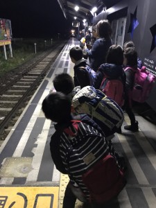いつもとはひと味もふた味も違う今回の東北キャンプ、普段の遠足であればすでに解散している17時30分、子ども達は大きなリュックを背にして、買いたての駅弁を大切そうにしながら、毎度の元気な姿で東京駅22番線ホームに集まりました。小学生中心のキャンプ、参加常連の子どもが多くいます。対して私は初めての参加なので、「え、こうのすけ初めてなの?」「これからこういう所に行くんだよ」など先輩達に手ほどきを受けながら新幹線の到着を待ちました。そうこうしているうちに我々が乗る新幹線、はやて115号がこちらにやって来ました。お母さんとの暫しの別れをして、しっかりとした足取りで新幹線に乗り込みます。心配そうな、寂しそうな表情のお母さん達とは反対に、新一年生から「もう十分行ってきますしたよ」という声が聞こえ、子ども達の成長とたくましさを感じた一幕でした。