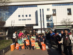 ついに出発する時間を迎え、ご夫妻方にお車を出していただき、2泊3日四六時中お世話になったこすもす公園を後にしました。順調に新花巻駅に到着し、新幹線の出発時間まで、ここでも自生するつくしとスギナ狩りが始まりました。何処であろうとも時間を余すことなく使います。新幹線の時間が迫ってくると、今回の東北キャンプで常にお世話になった藤井ご夫妻と、子ども達のために急ピッチでピノキオ滑り台を作ってくださった棟梁方に最後のお礼とお別れをし、山の幸を海の幸を両手に抱え、駅構内へ向かいました。帰りの新幹線では、今日一日を振り返りながら、日記を書きます。書きたいことが多くどこを抜粋しようか頭を抱えている子も多くいました。行きよりも時間の経過を早く感じ、あっという間にお母様方の待つ東京駅に到着しました。こうして特別企画”東北キャンプ”が無事閉幕しました。