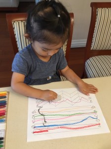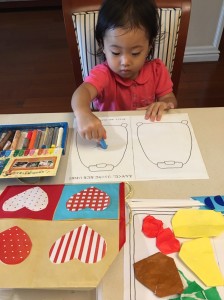 3日にわたって行ったお稽古でしたが、2日目も3日目も、初日にやったことの復習を丁寧に行いながら少しずつ進めていきました。少人数のクラスや個別のクラスでは、その子どもに合った進め方ができるという大きな利点があります。まだ勉強ではなく遊びのなかで、自分でできたうれしさ、達成感をたくさん感じさせてあげてほしいと思います。「まだ2歳だから」という大人の思い込みは忘れましょう。様々な刺激が子どもの可能性を引き出す契機になり得るのですから。