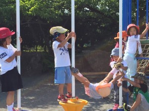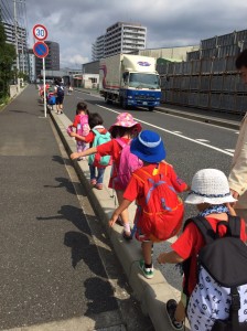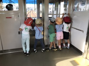 帰りの電車ではみんな疲れてぐったりかと思えば、仲間とご機嫌で楽しくお話をしている子ども達でした。年少チームも疲れ知らずで、思う存分に夏の一日を楽しみました。ひと夏の子どもの成長は著しいものです。仲間との輪のなかで、どの子の心の中にも小さな宝物ができます様に。