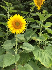 猿島へ向かう船の中での子ども達は、デッキに陣取り海風とともに周りの景色を楽しみました。島に着き桟橋を渡るとたくさんのひまわりが子ども達を迎えてくれているようでした。入道雲、ひまわりなど夏ならではのモチーフをお稽古で取り上げていたので、自然の中で実物に接した子ども達の印象に深く残るでしょう。