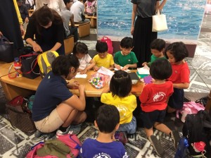 朝 6:00過ぎの東京駅。みんなを今日から始まるキャンプをゆっくりお出迎えするためにリミちゃんと二人で到着すると、銀の鈴には、先客が。元気一杯に、ワクワク姿でお出迎え。次々に意気揚々と集合した子どもたちは、銀の鈴の横で折り紙をおりながら、集合時間を待っていました。今年は、食習慣と生活習慣をしっかりと身につけたいので、リーダーになるべく年長さんが先発隊として、斑尾に乗り込みます。