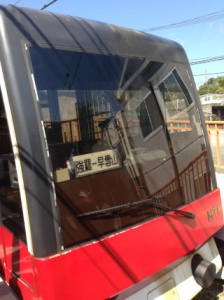 登山電車にゆられ強羅駅に到着しました。ここからは、さらに登りが急なケーブルカーにのりました。一直線で山を登っていくので電車もななめになっています。
