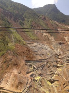 ロープウェイで途中下車したのは、大湧谷というゆで卵が有名な谷です。大きな谷からは、もくもくと煙が出ていました。