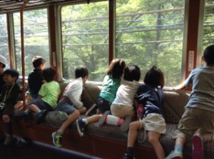 子ども達は、その角度にもびっくりしていましたが、外を眺めたり、頂上に伸びた線路を運転席の後ろから見たりして、楽しんで過ごしていました。箱根には、ワクワクが沢山あります。