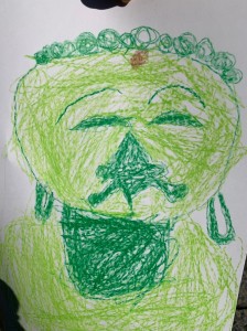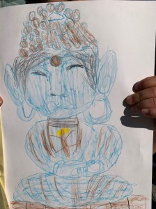 英語、中国語、韓国語など言語は違えど、すごい!と感動している心はしっかり感じ取れているようで、より一層自信をもって描きあげていました。家族で訪れていた中国人の女の子は、「私も描きたい!」と一緒になって大仏様を描き、みんなで写真を撮るととっても嬉しそうでした。