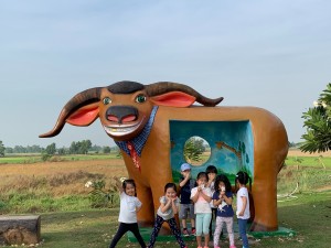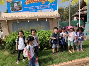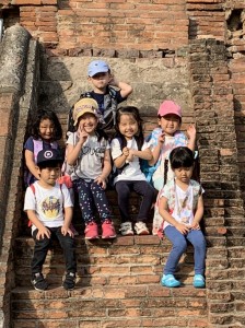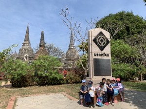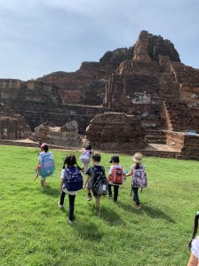 回を重ねる度にドラえもん DAY CAMPは、ドラえもんのポケットから、新しい道具をもらったかのように、新しい世界へ、子供たちをいざなってくれる時間になってきました。前回から日も浅く記憶に新しいからこそ、子供たちのワクワクも、キラキラとした朝日に負けないくらい、Maxです。顔見知りのドライバーさんに加えて、今日は、日本語も英語もタイ語もお話しできるあゆみ先生も一緒です。サンプラーンの思い出を話し始めると、まるで映像を再生しているかのように会話が止まりません。その様子を見ていると、実体験の大切さ、仲間と一緒に過ごす時間がどれだけキャンプを充実させてくれるのかを感じずには入れません。今回は、タイの王道の世界遺産アユタヤの世界を訪れます。今後、タイのことを子供たちが、しっかり子供たちが感じたことで、アテンドしてくれることを期待しながら、いよいよスタート。冒険の中でたくさんの宝を玉手箱に入れてこられますように。