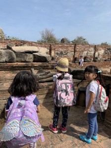 12月に続き、思う存分タイの空気を体にしみこませました。この王道の冒険は、何度か訪れた子供達でも、違った子供目線での冒険になりました。遺跡などは、子供達にとって、ちょっぴり難しいと感じる場所。でも広々とした自然の中で、走ったり、かくれんぼをしたり、なかなか贅沢な環境だということに気づかされました。たくさんある塔も、ただただ見ても仕方がありません。それぞれの場所でフォーカスポイントを見つけてみると、一つ一つが生きてきますね。もっともっとと欲張りたくなりました。でも次のお楽しみ。今回はキャンプまでに沢山、調べたりアンテナを張り、子供目線でのアユタヤにするために準備を楽しみました。やればやるほどワクワクして、バンコク到着後に訪れたアユタヤは、今まで知っていたものとは別物。どんな物もとことんやる!とインプットする量のちがい、そして興味の幅、深さが違うことを実感しました。自分で見て、感じたからこそオリジナルなキャンプ、そしてその時に最高のものを子供達と一緒に楽しめます。こんな時間は、子供達のパワーも加わり、すごいエネルギーになります。