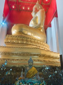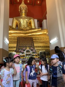 その後は、大きな金張の仏像を見、またその圧巻な大きさを感じました。タイでは、多くの方が、祈っている姿を目にします。そんな様子も子供達には、自然なのか、大人に混じり、正座をし、丁寧に手を合わせていました。