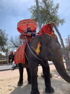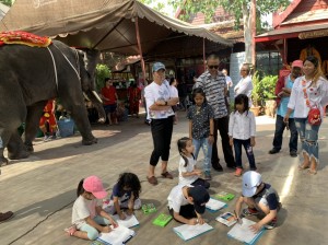 いよいよお待ちかね象でのアユタヤの冒険。大きな象で最初は不安だった子供も、お友達仲間に背中を押されて、全員でアユタヤの街を探訪しました。