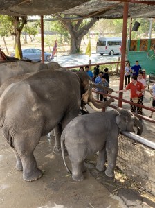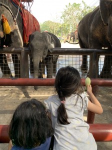 近くの川にはアリゲーターが現れたり、水を飲んだ象に水をかけられたり、生き生きとした体験は、忘れられない宝になったと思います。象にとうもろこしをあげたり、曲芸を見たり、タイの神様の象に親しみが湧き、身近に感じている様子はタイ在住の子供達にとって、何よりだったでしょう。