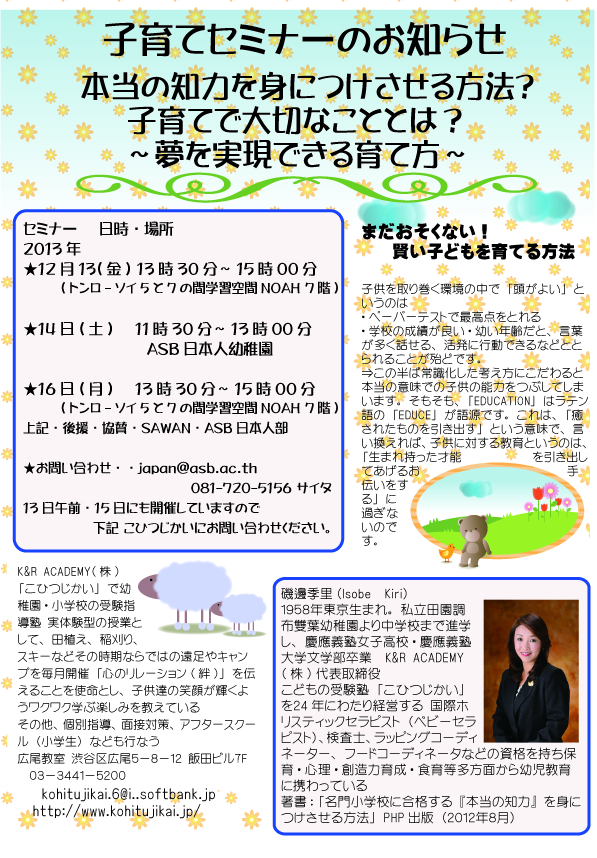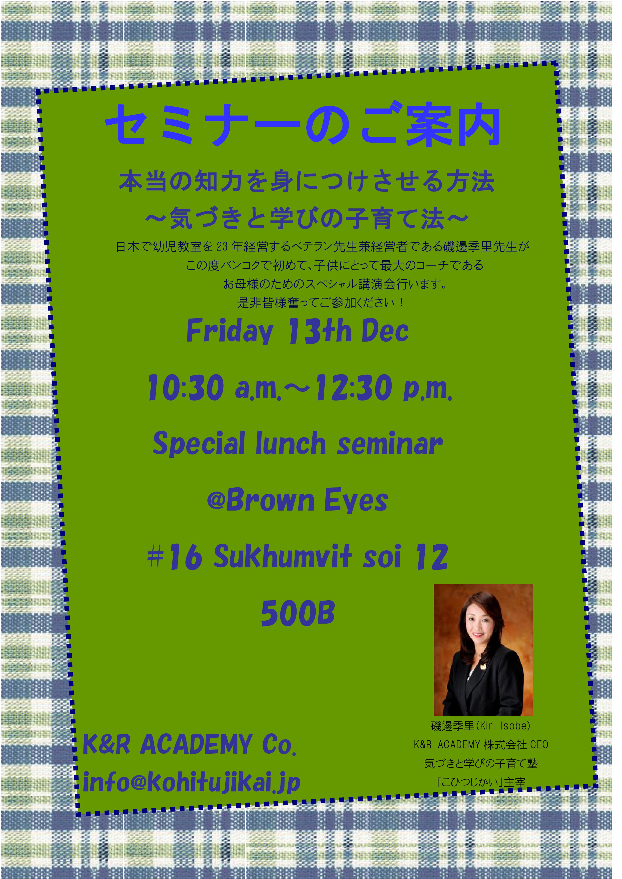 バンコクでセミナー、ワークショップを開催致します!