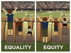 左側がEquality=平等、右側がEquity=公正。「同じ」ということでも、捉え方によって全く違う結果になるという絵です。