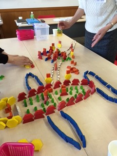 講習2日目はワークショップ中心の内容です。初日とは違ったグループでの作業になります。一人が先生になってお題を出し、他の人がパターンブロックでお題に則して何かを作ります。あるグループのお題は「花」でした・・・続きを読む